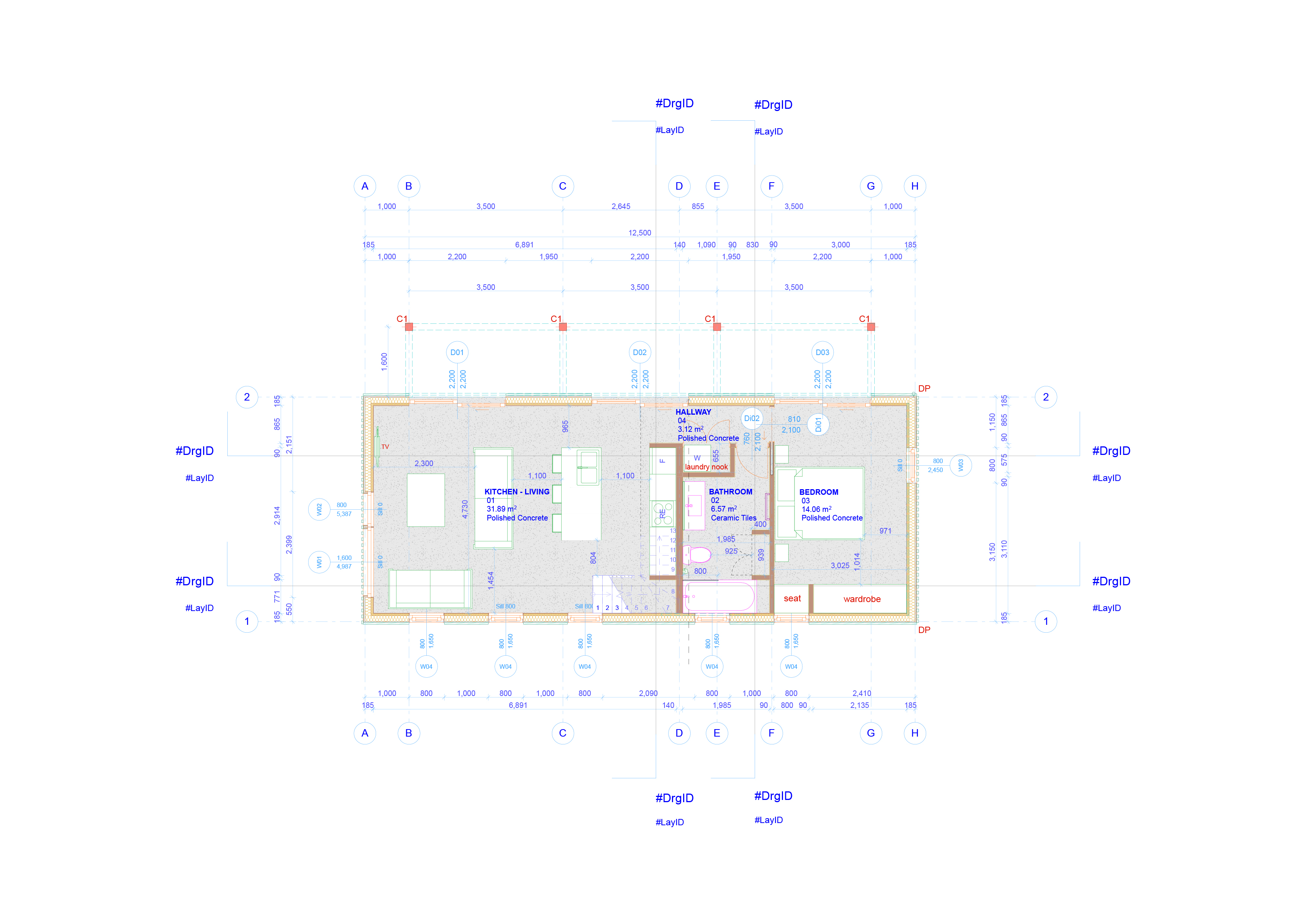 For the interior, we envision clean and uncluttered spaces with white or neutral colours. We will make the most of the grey colour of the concrete floor and add to this with concrete bench tops and similar coloured ceramic tiles. The timber joinery, stairs and visible timber collar ties in the ceiling will provide some natural timber highlights.