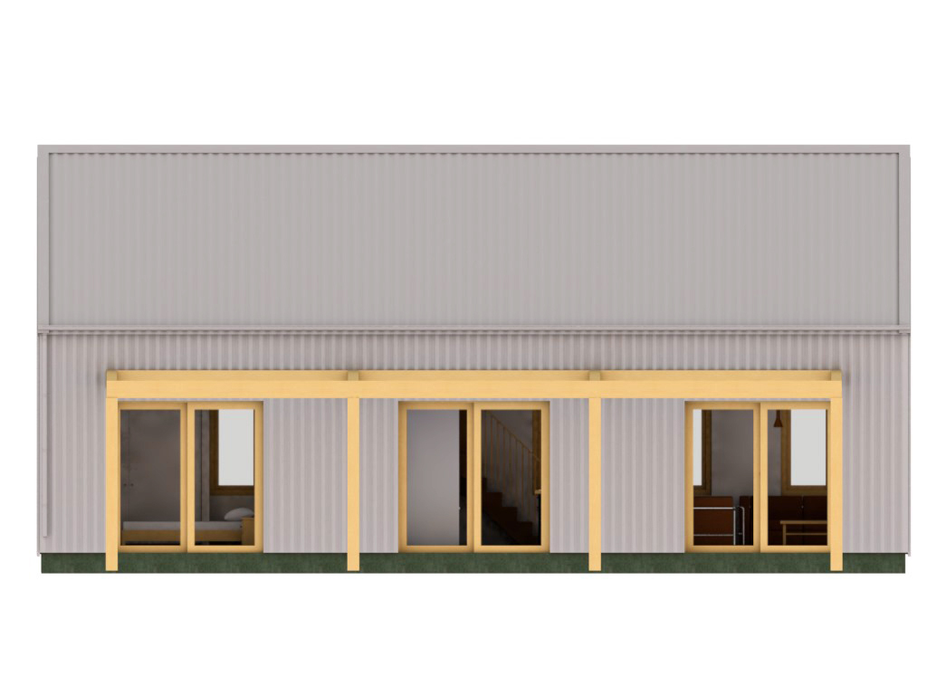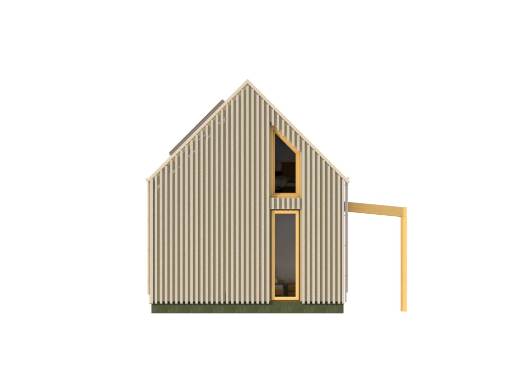 The North and South sides and the roof will be clad in zincalume corrugate iron. The East and West gable ends will be NZ native or recycled timber board and batten. The Western side will include shading to keep the high summer sun from overheating the house. The Northern side includes a pergola for shading and it provides mounting space for solar panels. The house will have triple glazed wooden joinery to keep the warmth in during winter and cool during summer.